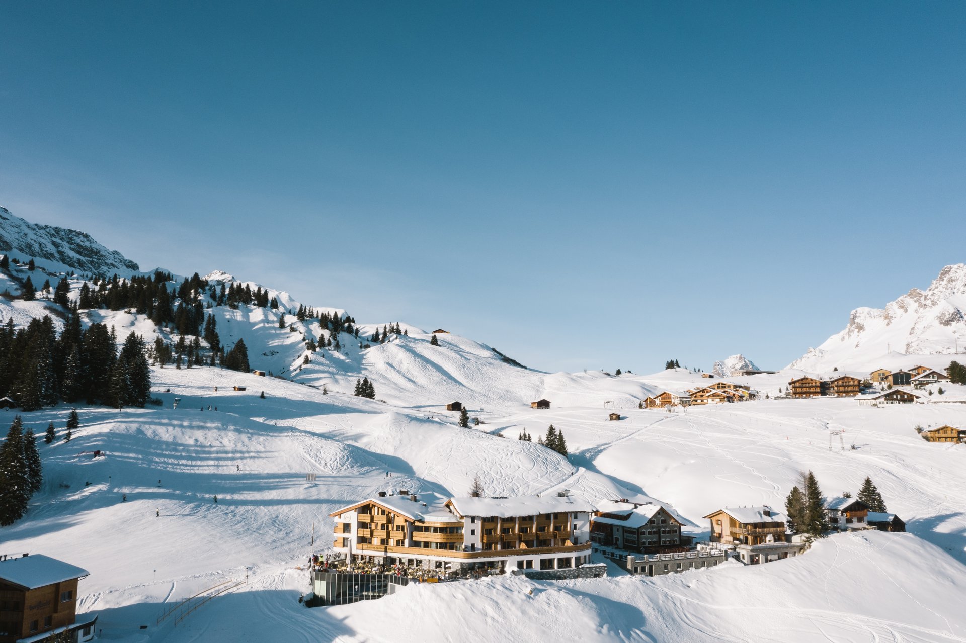 The hotel is located right on the slopes with the Arlberg’s 340 km of pistes right at your doorstep.