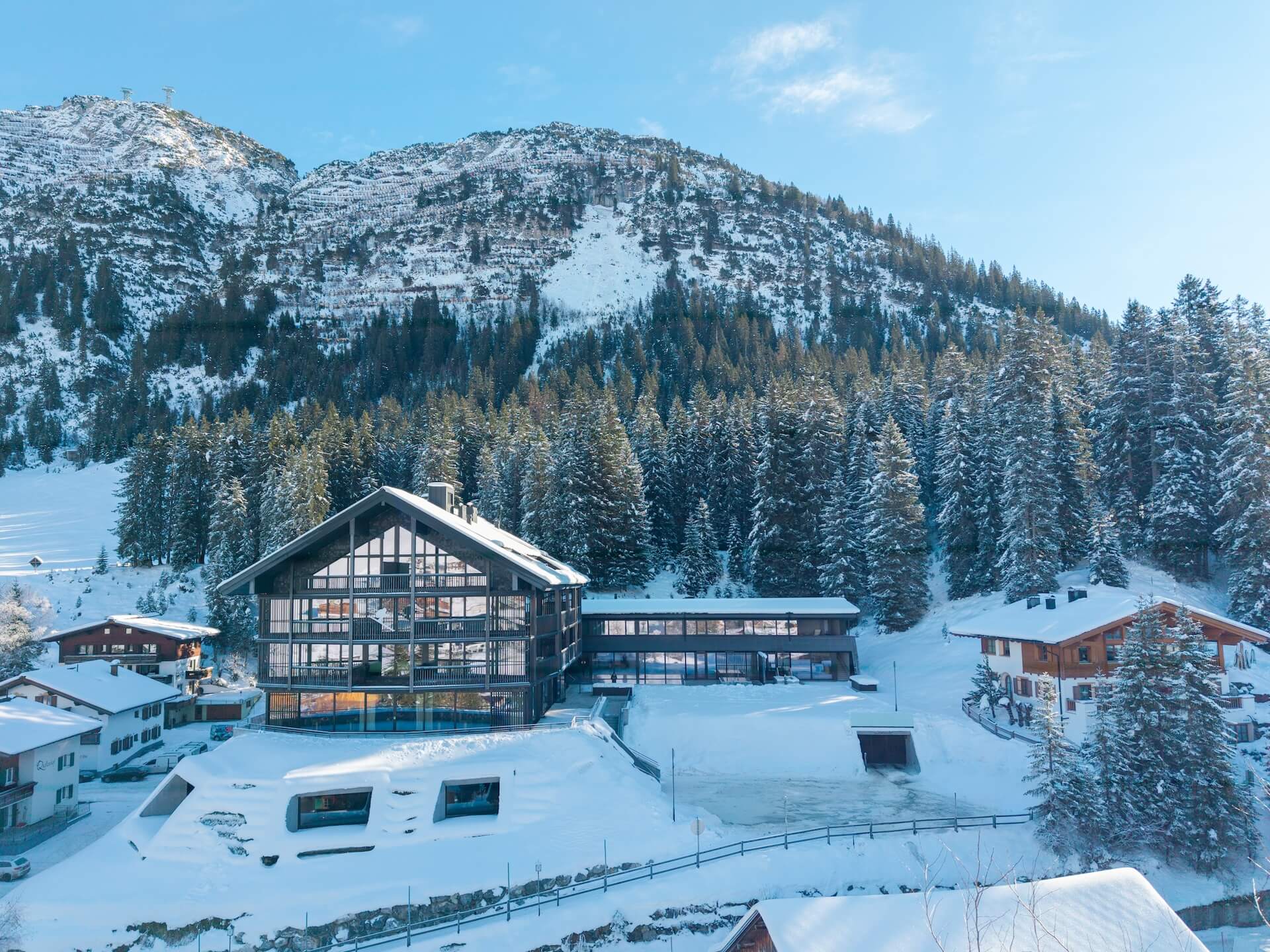 Accommodation: 27 exclusive suites (38–95 m²) offering panoramic views over Lech and the surrounding mountains.